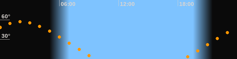 | Aufgang | 18:29 Uhr im Nordosten (αAz = 60,5°) |