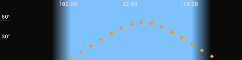 | Höchster Stand (Kulmination) | 14:08 Uhr (h = 57°) |