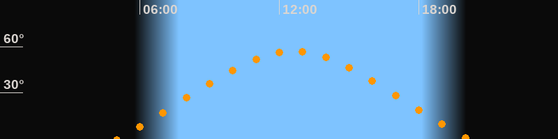 | Höchster Stand (Kulmination) | 12:35 Uhr (h = 57°) |