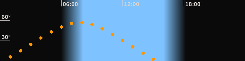 | Höchster Stand (Kulmination) | 07:48 Uhr (h = 57°) |