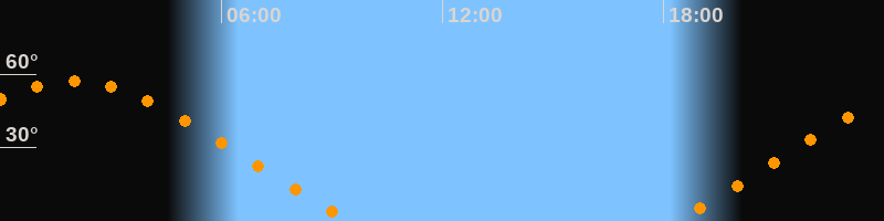 | Aufgang | 18:19 Uhr im Nordosten (αAz = 60,5°) |