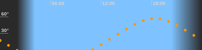 | Höchster Stand (Kulmination) | 18:23 Uhr (h = 57°) |