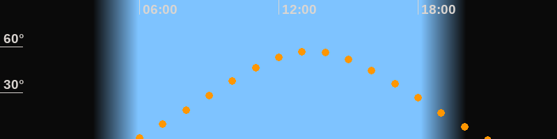 | Höchster Stand (Kulmination) | 13:24 Uhr (h = 57°) |