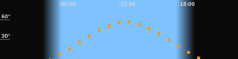 | Höchster Stand (Kulmination) | 12:41 Uhr (h = 57°) |