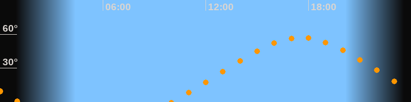 | Höchster Stand (Kulmination) | 17:33 Uhr (h = 57°) |