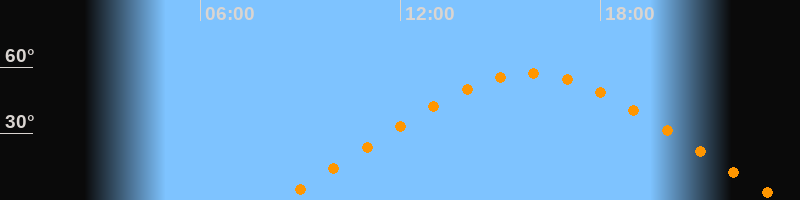 | Höchster Stand (Kulmination) | 15:54 Uhr (h = 57°) |