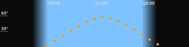 | Höchster Stand (Kulmination) | 13:05 Uhr (h = 57°) |