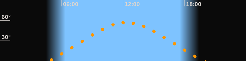 | Höchster Stand (Kulmination) | 12:18 Uhr (h = 57°) |