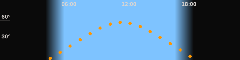 | Höchster Stand (Kulmination) | 12:10 Uhr (h = 57°) |