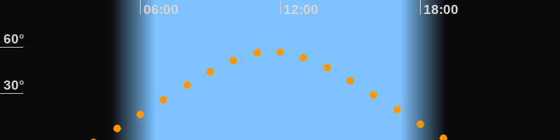 | Höchster Stand (Kulmination) | 11:39 Uhr (h = 57°) |