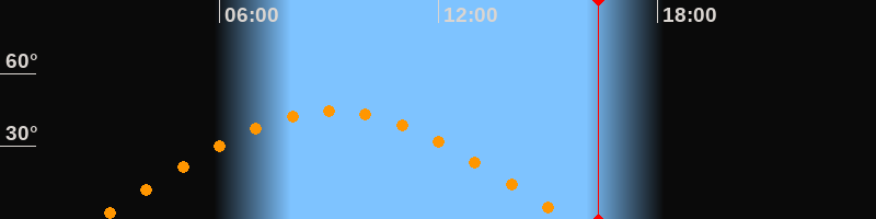 | Höchster Stand (Kulmination) | 09:06 Uhr (h = 44,5°) |