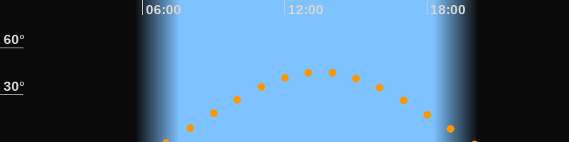 | Höchster Stand (Kulmination) | 13:28 Uhr (h = 44,5°) |