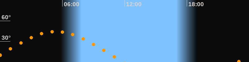 | Höchster Stand (Kulmination) | 05:22 Uhr (h = 44,5°) |