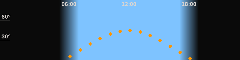 | Höchster Stand (Kulmination) | 12:48 Uhr (h = 44,5°) |