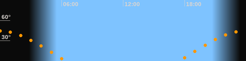 | Aufgang | 17:25 Uhr im Osten (αAz = 81°) |