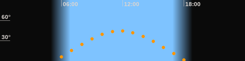 | Höchster Stand (Kulmination) | 11:45 Uhr (h = 44,5°) |
