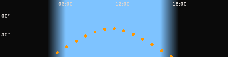 | Höchster Stand (Kulmination) | 11:41 Uhr (h = 44,5°) |