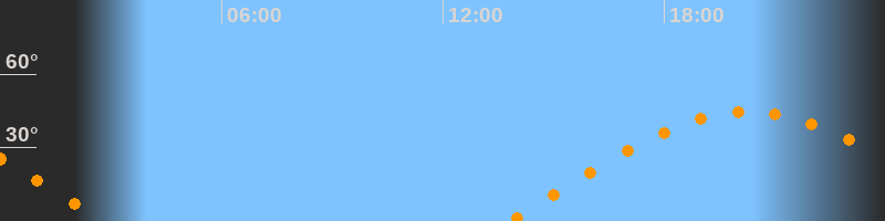 | Aufgang | 13:49 Uhr im Osten (αAz = 81°) |