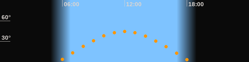 | Höchster Stand (Kulmination) | 11:58 Uhr (h = 44,5°) |