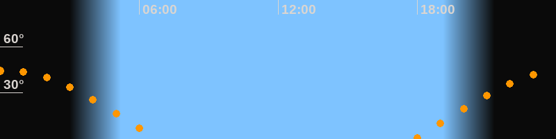 | Aufgang | 17:49 Uhr im Osten (αAz = 81°) |