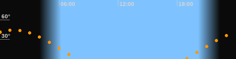 | Höchster Stand (Kulmination) | 01:18 Uhr (h = 44,3°) |