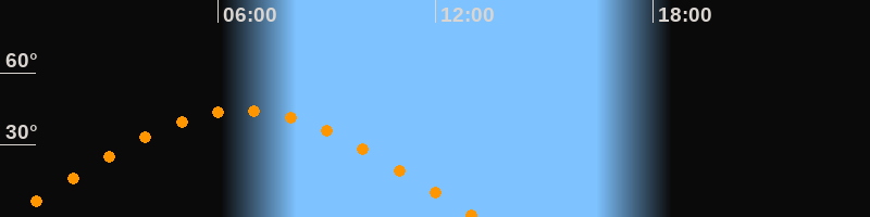 | Höchster Stand (Kulmination) | 06:40 Uhr (h = 44,3°) |
