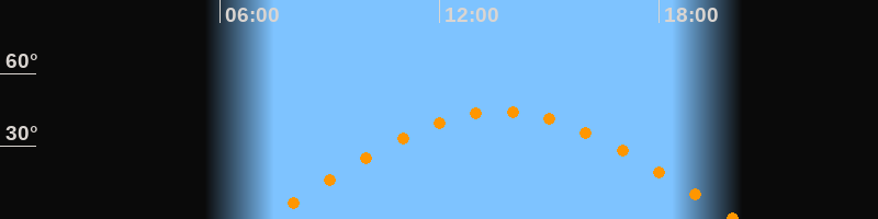 | Höchster Stand (Kulmination) | 13:40 Uhr (h = 44,3°) |