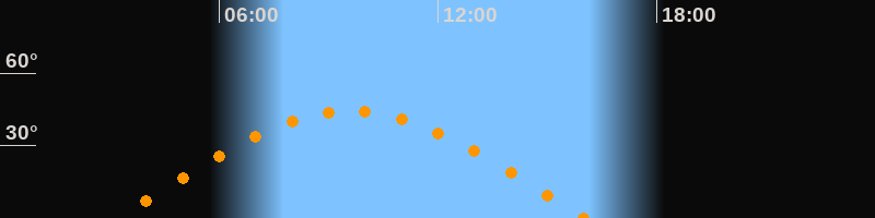 | Höchster Stand (Kulmination) | 09:36 Uhr (h = 44,3°) |