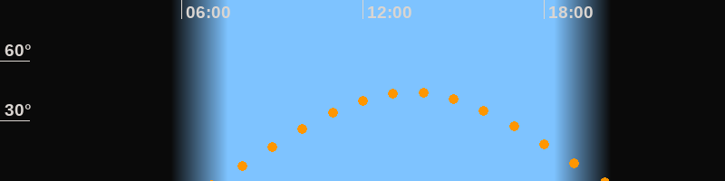 | Höchster Stand (Kulmination) | 13:34 Uhr (h = 44,3°) |