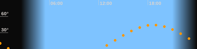 | Höchster Stand (Kulmination) | 18:41 Uhr (h = 44,3°) |