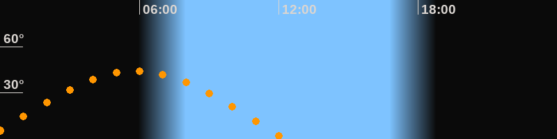 | Höchster Stand (Kulmination) | 05:50 Uhr (h = 44,3°) |