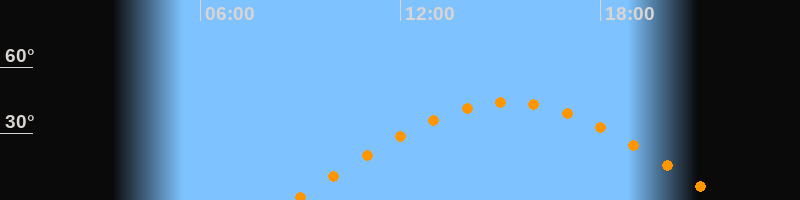 Höchster Stand (Kulmination)15:15 Uhr (h = 44,3°)