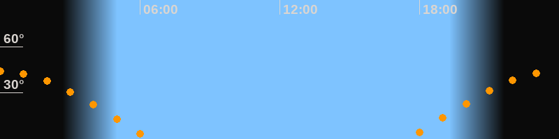 | Aufgang | 17:28 Uhr im Osten (αAz = 81,4°) |
