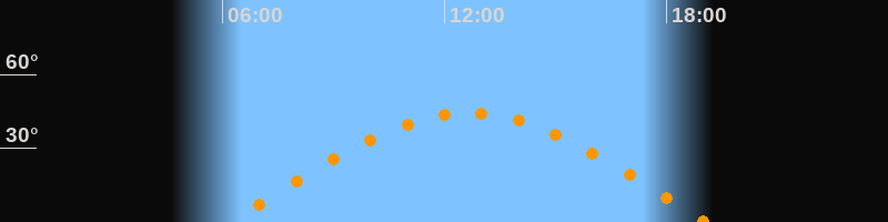 | Höchster Stand (Kulmination) | 12:39 Uhr (h = 44,3°) |
