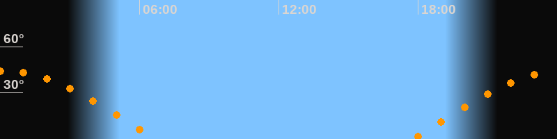 | Höchster Stand (Kulmination) | 00:11 Uhr (h = 44,3°) |