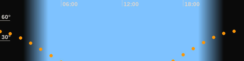 Höchster Stand (Kulmination)23:24 Uhr (h = 44,3°)