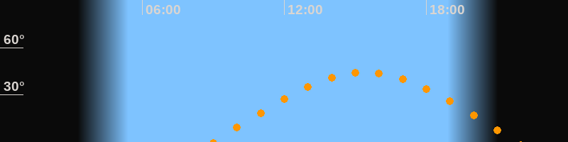| Höchster Stand (Kulmination) | 15:25 Uhr (h = 44,3°) |