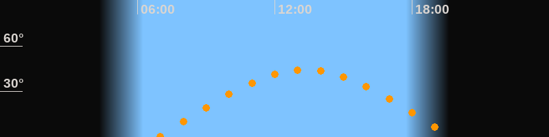 | Höchster Stand (Kulmination) | 13:19 Uhr (h = 44,3°) |