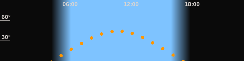 | Höchster Stand (Kulmination) | 11:33 Uhr (h = 44,3°) |