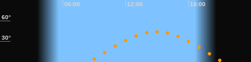 | Höchster Stand (Kulmination) | 14:54 Uhr (h = 44,3°) |