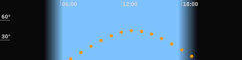 | Höchster Stand (Kulmination) | 13:12 Uhr (h = 44,3°) |