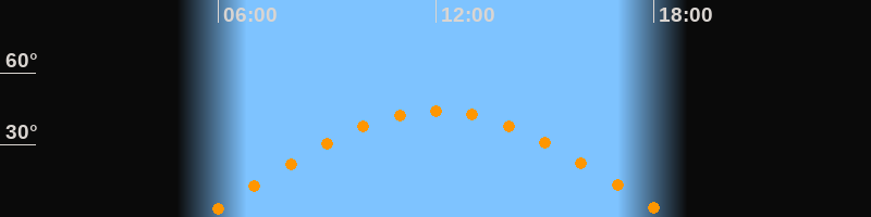 | Höchster Stand (Kulmination) | 12:01 Uhr (h = 44,3°) |