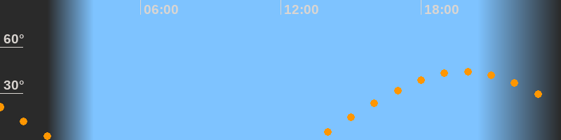 Höchster Stand (Kulmination)19:50 Uhr (h = 44,3°)