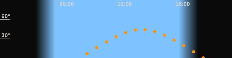 | Höchster Stand (Kulmination) | 14:39 Uhr (h = 44,3°) |