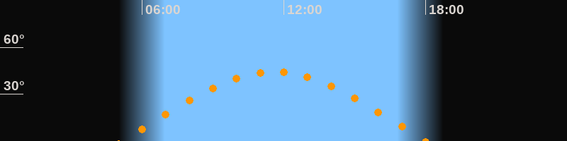 | Höchster Stand (Kulmination) | 11:35 Uhr (h = 44,3°) |