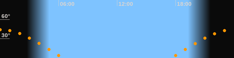 | Untergang | 06:30 Uhr im Westen (αAz = 278,6°) |