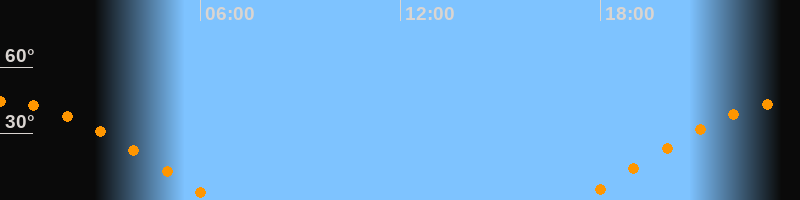 | Aufgang | 17:26 Uhr im Osten (αAz = 81°) |