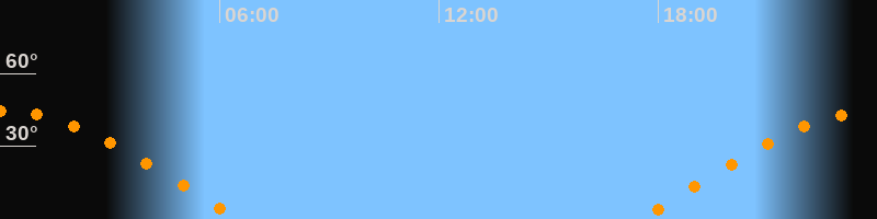 | Aufgang | 17:30 Uhr im Osten (αAz = 81°) |