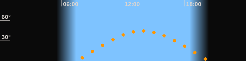| Höchster Stand (Kulmination) | 13:54 Uhr (h = 44,5°) |