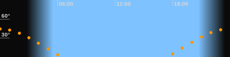 | Aufgang | 17:24 Uhr im Osten (αAz = 81°) |